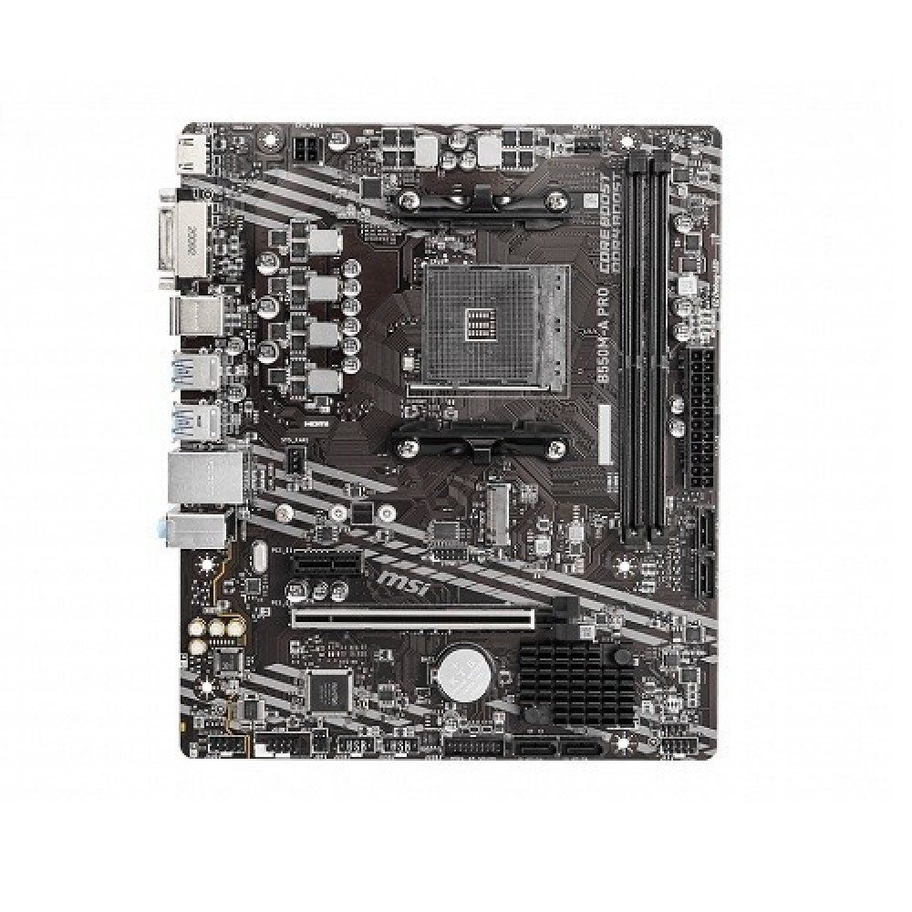 The MSI B550M-A PRO Micro ATX AMD Motherboard is engineered for high-performance computing, offering seamless compatibility with AMD Ryzen 5000 and 3000 series desktop processors. However, it does not support AMD Ryzen 5 3400G, Ryzen 3 3200G, and AMD Ryzen 4000 G series processors. Built with a premium layout and digital power design, this motherboard ensures enhanced stability and power efficiency, making it ideal for gaming and productivity.